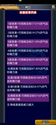每项技能均分为5个等级,每个等级的熟练度上限设定为6000,熟练度的总体上限为30000 。熟练度越高,技能所展现出的效果就越发显著。当玩家角色等级达到90级,且对应技能熟练度也达到上限时,该技能便步入化境阶段,此时技能效果将达到最佳状态。