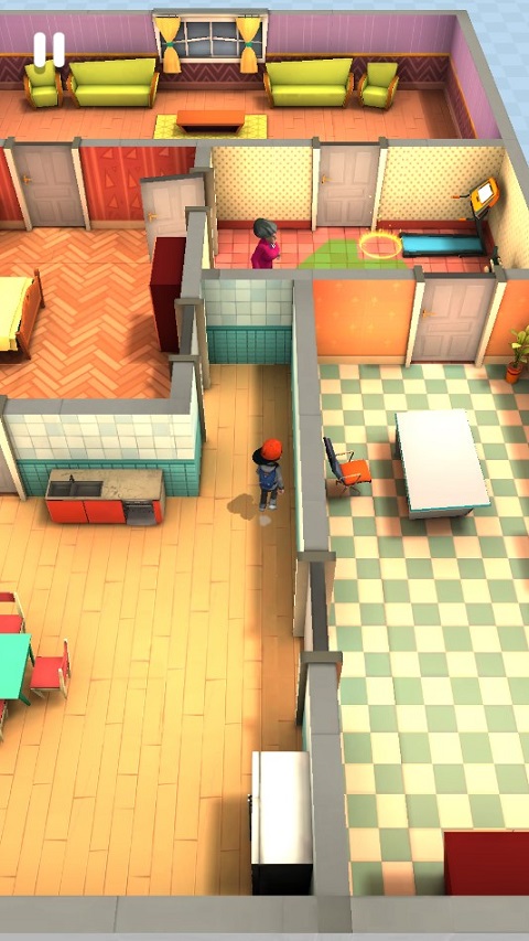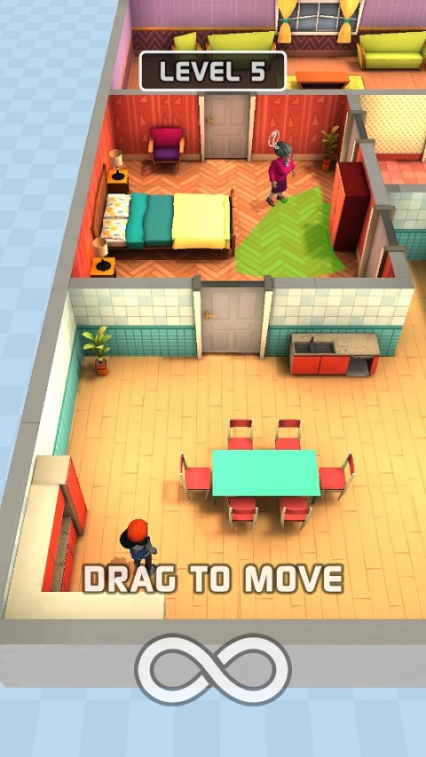 在游戏里,玩家能够借助上帝视角,紧紧留意老师的行动轨迹,穿梭于各个不同的房间,巧妙避开老师的视线。通过拖动屏幕上的虚拟摇杆来操控角色移动,在不同房间间来回辗转,进而顺利到达房间内的黄色亮光区域。