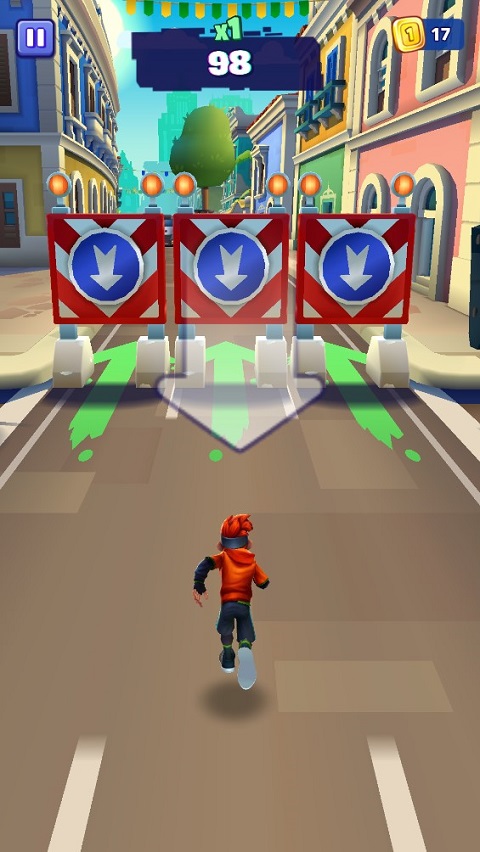 《地铁散步》正版是一款操作流畅度极高的无限循环跑酷游戏。其游戏画面的颜色搭配活泼靓丽,清新色彩扑面而来。它不仅能带来出色的视觉效果,还能让玩家尽情探索城市世界。无论是在街道、地铁,亦或是屋顶,跑酷场景花式百变。游戏中设有一些可加速玩家奔跑的道具,玩家通过一次次的逃跑、躲避,提升奔跑成绩。随着分数的不断增长,更多新道具与新玩法将逐步解锁。