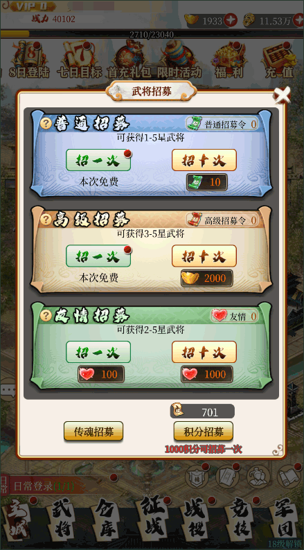 首先要说的是武将招募系统,和传统招募系统有所差异的是,新添了友情招募方式。玩家能够凭借消耗好友日常所产出的友情点来开展招募操作(各位大大们,赶紧去结识那些志同道合的友人吧~)