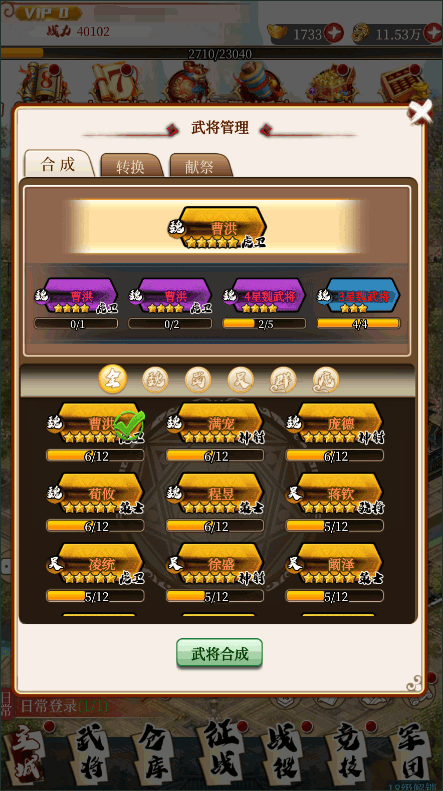 其次,新增的祭坛功能,能通过消耗一定数量的武将,来提升指定武将的星级。