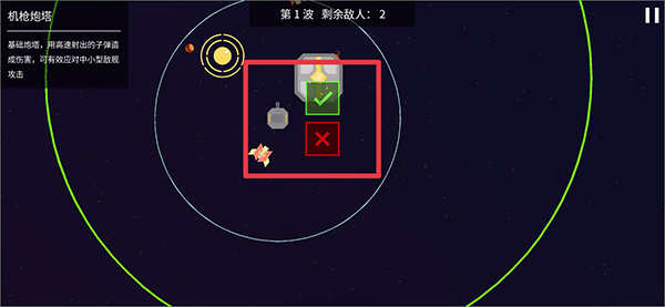 3、做出选择后,在地图上点击就能进行建造,接着通过搭建各类建筑来攻击敌人,以此保护我方建筑。