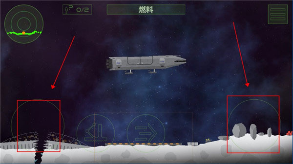 1、飞船引擎由左右两边的按键操控,我们得谨慎把控飞船平衡,使其安全着陆。