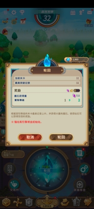 11、在主要画面的下方,有一个醒目的蓝色水晶标识,标识呈现轮回样式。通过这个轮回功能,能将你当前角色的等级、飞艇的强化状态等全部清零,让一切重新回到起点。之后,你可以去挑战更高级的怪物,获取更优质的资源,进而再次对角色与飞艇进行强化、升级以及升星操作。