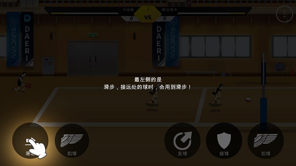 2、进入比赛界面,滑步位于最左侧。当需要接住远处的球时,就会用到滑步。