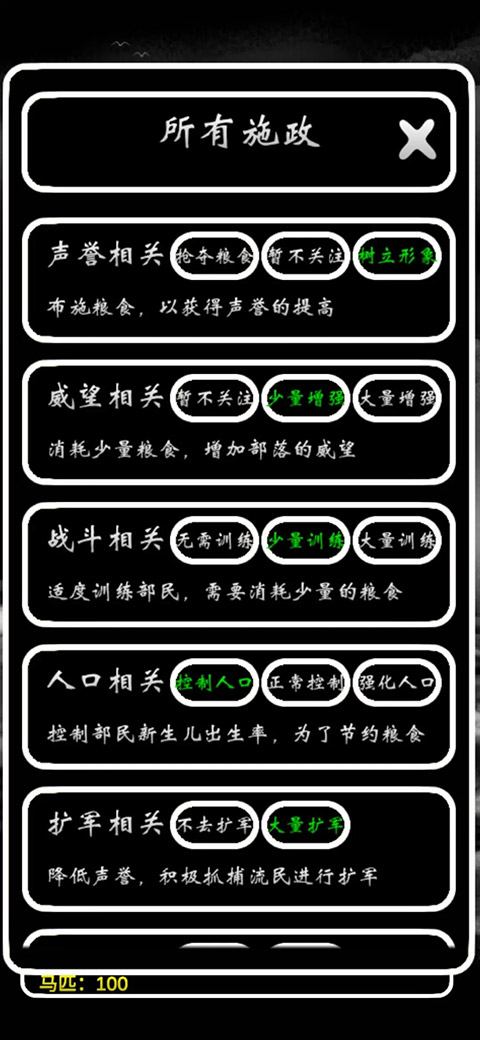 每个月时候 分配族民去干这些活 然后可以拿这些资源去跟异族部落交易到你所需的资源
