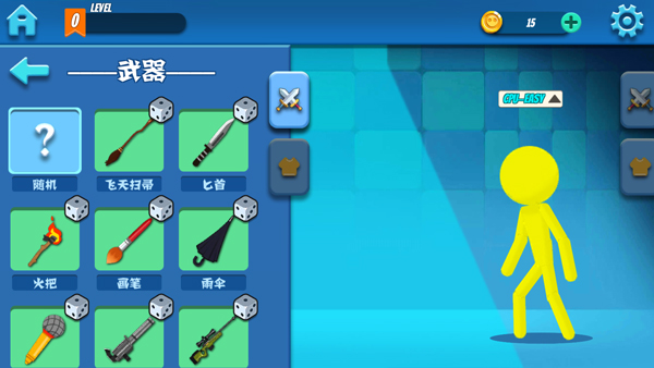 2、玩家于游戏中挑选火柴人,并搭配称手的武器,随后踏入格斗场景,与敌人展开格斗。