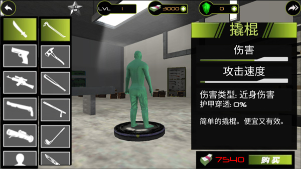 2、各种不同的武器,各有特点,熟练的使用它们,为你冲锋陷阵的战斗;