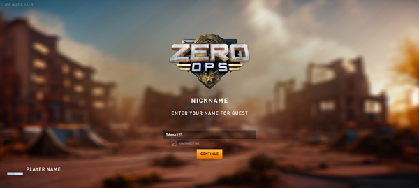 1、打开zero ops ns,点击左下角的游客登录,先取一个用户名,取好后点击continue 。