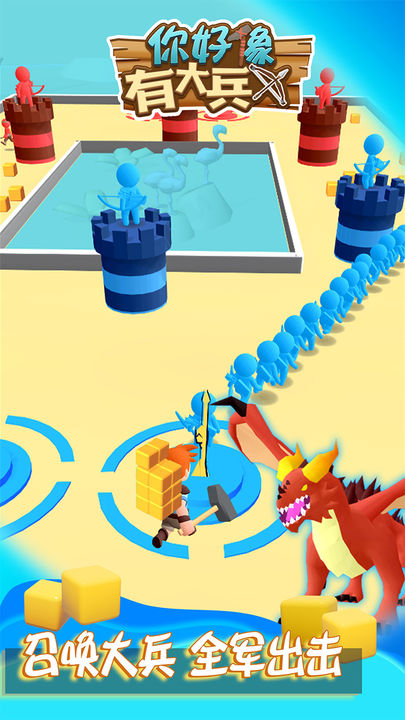 你好像有大兵安卓版是一款超有趣的策略休闲手游。其玩法丰富多样,每一关的挑战难度都有所差异,还融合了特色经典的街机玩法,能带给你沉浸式的战斗感受!操作难度简单,适合各个年龄段的玩家。只需点击屏幕挖矿收集砖块,消耗一定数量的砖块就能召唤大兵。