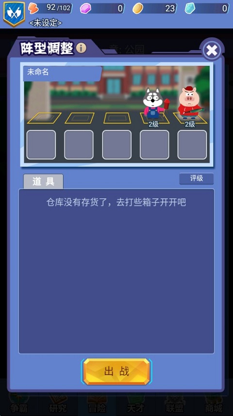 4、冒险模式类似于玩家所体验过的闯关游戏,各篇章关卡设计各异,挑战难度不断攀升,在开战之前,你能够对阵容进行调整。