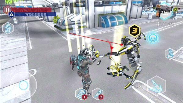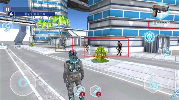3、玩家只需瞄准敌人就能开枪射击,只有把街道上的所有敌人全部消灭,玩家才可取得游戏胜利。