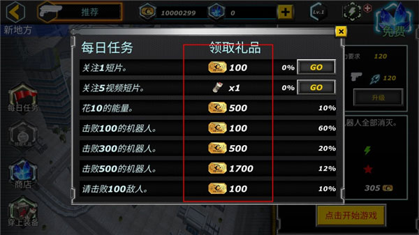 7、玩家还可以完成每日任务来领悟各种游戏奖励,用来升级自己的装备。