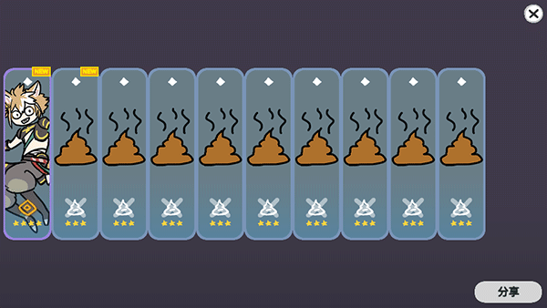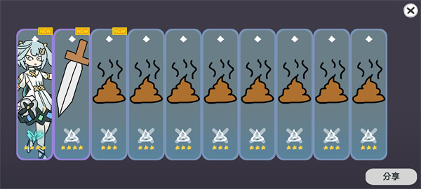这款游戏虽说画风透着几分魔性,但却能为你带来诸多全新乐趣。抽奖页面依旧支持十连抽,让你尽情施展运气。至于抽奖结果,说不定会相当有趣,你有可能抽到“废物”,或是破铜烂铁,当然也有机会抽到稀有角色,总之会让你啼笑皆非。