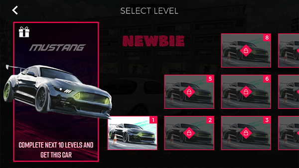 3、充满刺激感的漂移能让你玩得更加兴奋,而且你还能接着解锁性能更为强劲的车子呢。