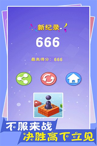 3、通过长按屏幕来选定跳跃力度,长按时间越久,跳跃距离越远。此外,在此处还能够查询过往的战绩。