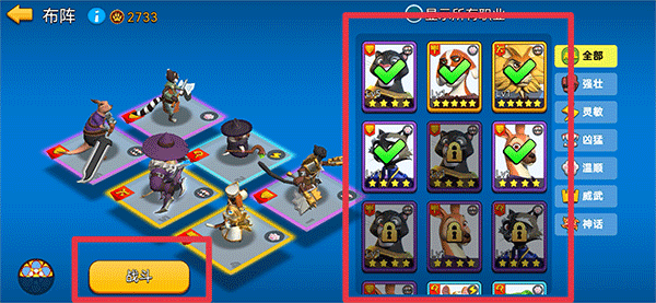 2、我们需要将自己手中的动物就行布阵,看看哪种阵容比较适合你,有些阵容看似很强,实则并不合适