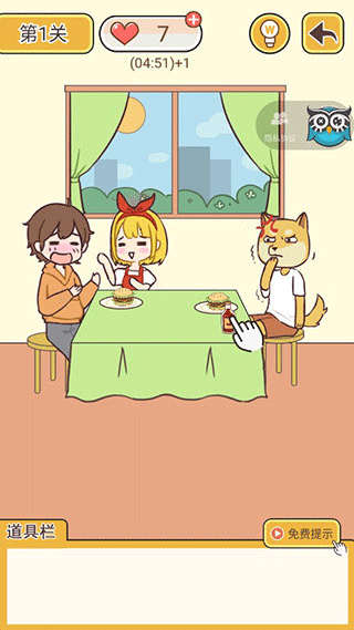 5、轻点左边女孩子的手,单身狗便会牵起女孩的手,紧接着点击一下头顶的灯泡,随后单身狗就会展开反击,说出“你看我和你女朋友才会来电”,如此之后就算过关了。