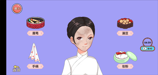 2、然后使用右下角的妆粉把脸涂白,再使用左上角的眉笔画眉毛;