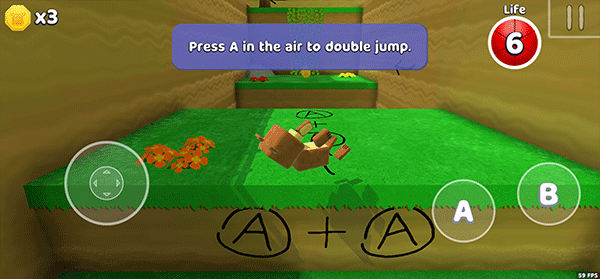 2. 左下角的轮盘按钮能够操控超级熊自由移动,通过滑动右侧屏幕可旋转视角。在正常情形下,按A键实现跳跃,按B键进行攻击。