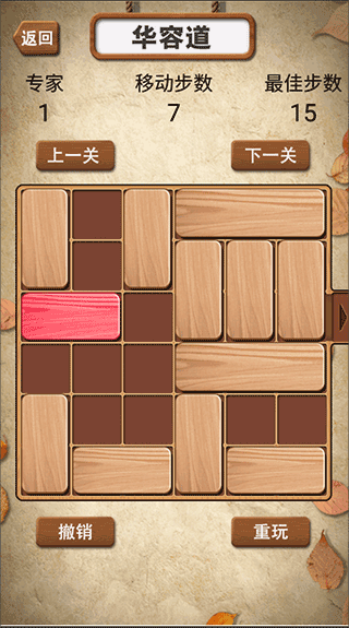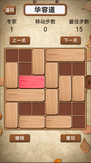 华容道积木拼图,是一款极其考验技巧与思维能力的益智游戏。玩家需想尽办法,以最少步数,通过挪动木块,让红色木块顺利抵达出口。该游戏针对不同玩家设置了多样难度,玩家能在这些难度里自由挑选关卡,挑战结束后还能再次体验。游戏画风十分讨喜,整体采用木纹配色风格,为游戏意境增色颇多。喜爱此类游戏的玩家,快来下载这款有趣的游戏吧!