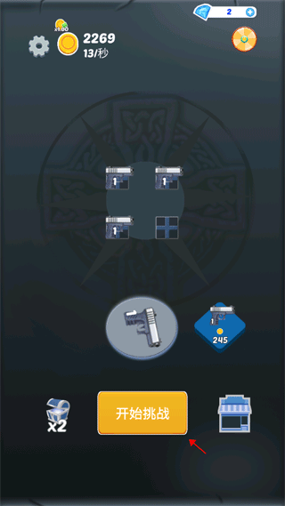 1. 开启游戏,待进入主界面后,首先利用金币购置充足的枪支,接着点击“开始挑战”。
