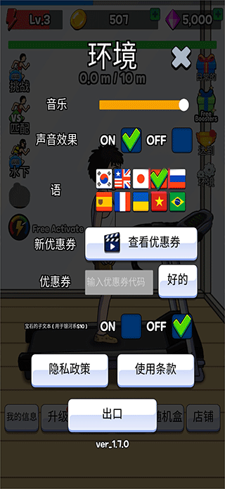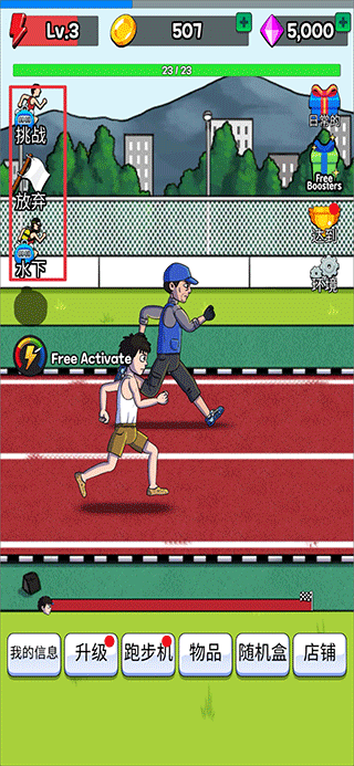 5、获得的金币可以用来升级男孩速度,耐力等的等级,也可以为跑步机升级