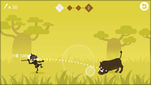 1玩家需把控手中武器的角度与力度,对准猎物,在猎物有所行动之前松开手指,便能完成射击操作。