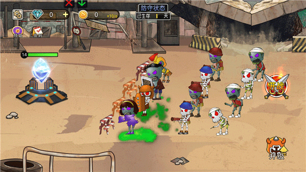 2、招募士兵消灭僵尸,全力保护水晶,玩家可使用金币来招募士兵。