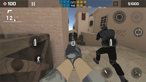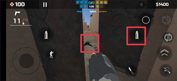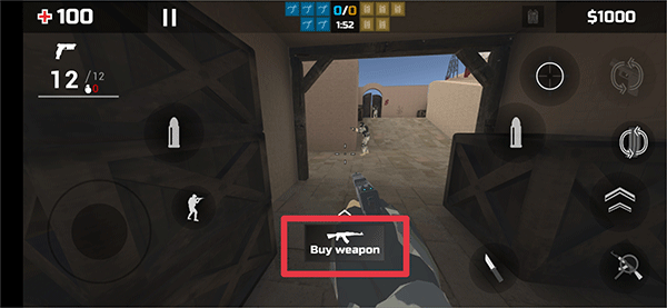 6、武器购买后,使用轮盘控制角色在地图中寻找敌人,遇到敌人使用武器将其击杀即可获得一分