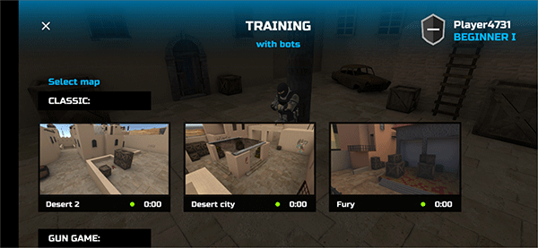 这里有4张地图,分别是沙漠2、沙漠城市、3000美元以及Trix 。每一张地图都有其独特的细节。请依据你想玩的游戏进行挑选,向着胜利进发!