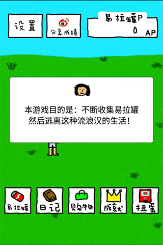 《搞笑圣者的旅程》这款游戏,画面确实比较简约,甚至略显草率,毕竟只是个不到10M的小游戏,咱也不能要求太高不是。游戏的核心玩法就是回收易拉罐,回收得越多,玩家获得的ap就越多。玩家能用这些ap去购买各种商品,助力游戏主人公脱贫致富。