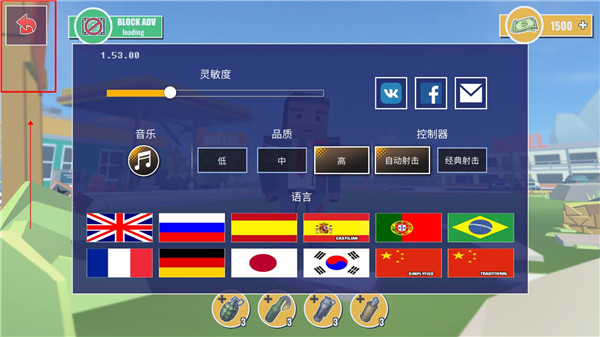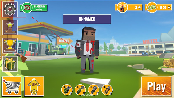 1、首先打开未知的像素枪战最新版本,然后点击进入游戏,点击左上角的设置图标;