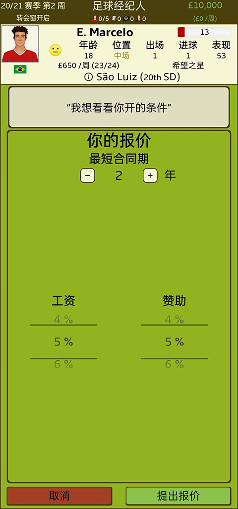 8、当你成为俱乐部球队的经纪人,就肩负起管理球队人员的重任。要积极收购足球天才以及具备潜力的足球运动员,努力去挖掘下一个像梅西、C罗这样的巨星。