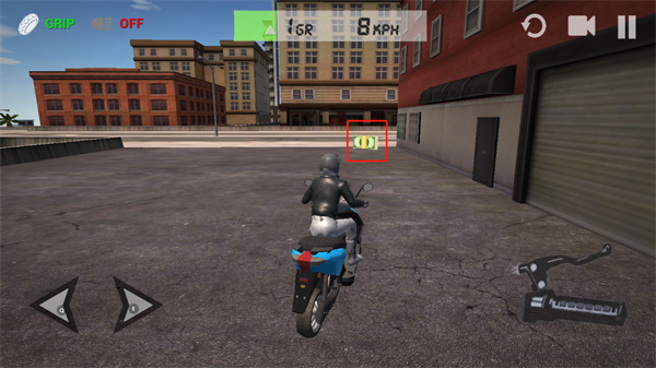 1、下载安装好终极摩托车模拟器,运行游戏,左边可以控住方向;