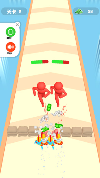 3、关卡的难度会随着不断过关而增加,控制自己的小人在赛道上跑酷。