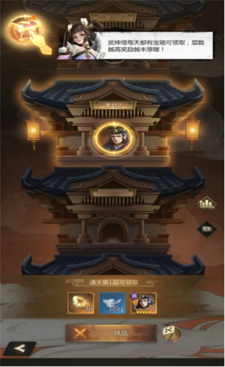 在游戏里,玩家挑战武神塔不受次数限制,只要挑战成功就能获取奖励。而且,玩家每天还能拿到武神塔宝箱奖励,随着攀登武神塔层数的不断提升,所获奖励也愈发丰厚。