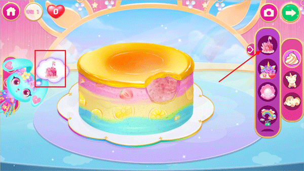 1在莉比小公主独角兽餐厅游戏里,能够为蛋糕装点上甜蜜的饰品。