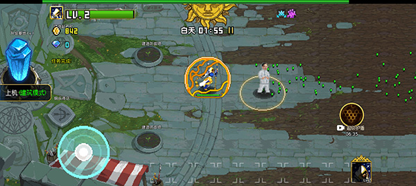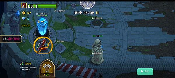 6、当遭遇敌方攻击而难以应对时,我们可切换至建造模式,建造众多防御塔,并召唤小兵与自己并肩作战。