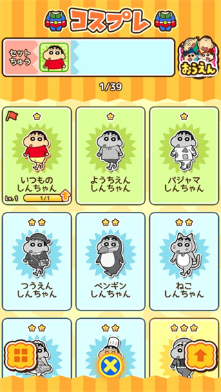 1、通关所获得的金币可以给小新买衣服和加成道具;
