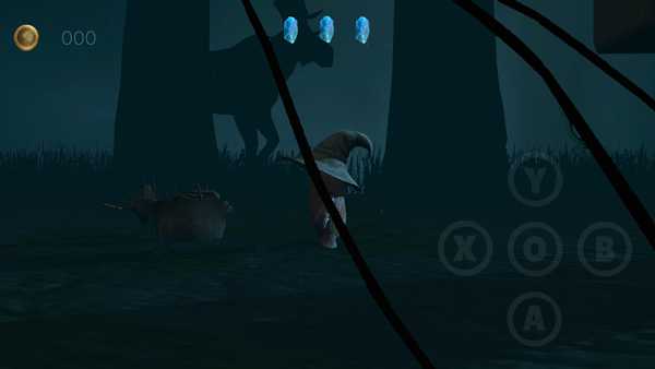 3、进入游戏后,界面如图所示。左侧用于控制移动,右侧的Y键是旋转攻击,A键是跳跃,B键则是下蹲爬行。