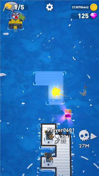 在游戏里,玩家置身于一片海域,初始拥有一座小型防御塔。玩家得在海中搜集各类物资,像防御塔、炮台、泳圈等,这些物资会融入木筏,强化领地的防御与攻击能力,提高在海战中的生存概率。