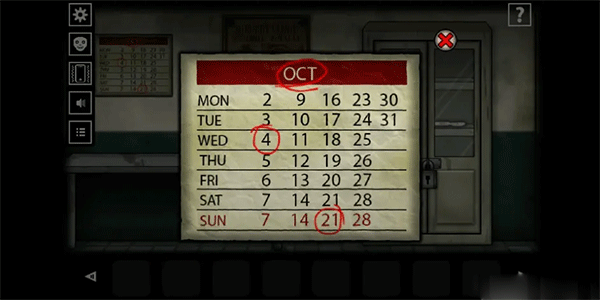 睡醒之后,出门前往第四个房间(也就是医务室)。在医务室里,留意墙上挂着的日历,日历上OCT是十月英文的缩写,由此得出密码「10421」。随后,在相应位置输入这个密码,打开下方的抽屉,就能拿到「一串钥匙」。