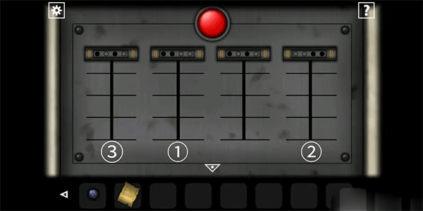 出门后,用钥匙打开旁边医务室的门。进入房间,观察墙上的手骨。随后走到外面,依据红色指骨的位置打开暗格,从而获取「钥匙」。正确的操作顺序为:①和②各自向下移动四格,③和②各自向上移动一格。