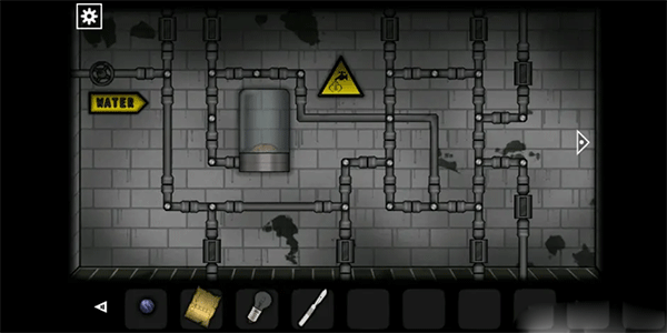先退出房间,接着前往工具房门口,依据水池里的提示开启铁门。走进房间后,连接好水管,然后点击左上角的阀门。