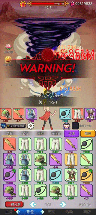 其挂机系统极为省心,玩家几乎无需手动操作,角色能自动升级,打怪掉落的装备自动收入背包,不要的装备还能自动分解。尤其是打 Boss 有几率掉落神装,那 5%的失败率,让刺激感拉满。
