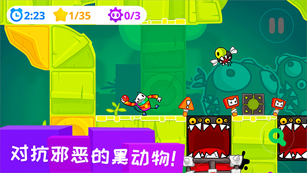 搜集星星消灭关卡的怪物!游戏一共拥有着50个关卡等待大家来通关