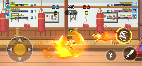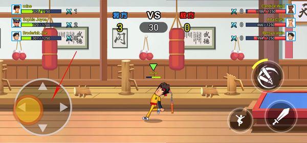 1、进入游戏之后,滑动左下角的摇杆进行角色移动;