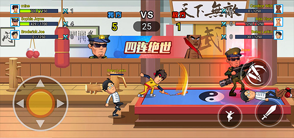 ,能让你领略与众不同的格斗体验,玩家还能操控角色在各种场景展开冒险。这里要特别提醒一下,选择强力的队友至关重要,这样在对抗中才不会轻易处于劣势。当然,游戏操作技巧也不容忽视,玩家得学会躲避敌方攻击,把握释放大招的时机,这些都很考验玩家的意识。《英雄之战:全明星战士》手机版采用卡通风格,技能大招炫酷无比,绝对能为玩家带来一场畅快淋漓的格斗盛宴。喜欢这类游戏的玩家,快来本站下载体验吧!