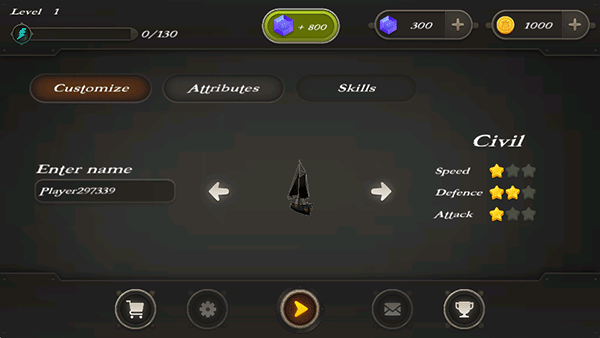 3、创建初始战舰,借助获取资源持续升级,提升防御力与攻击力。